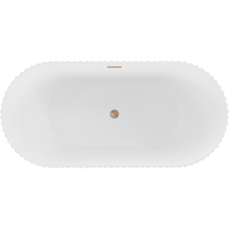 Volně stojící vana Mexen Paola s drážkovaným povrchem 150 x 75 cm, matná bílá, přepad z kartáčované mědi - 52721507501-65