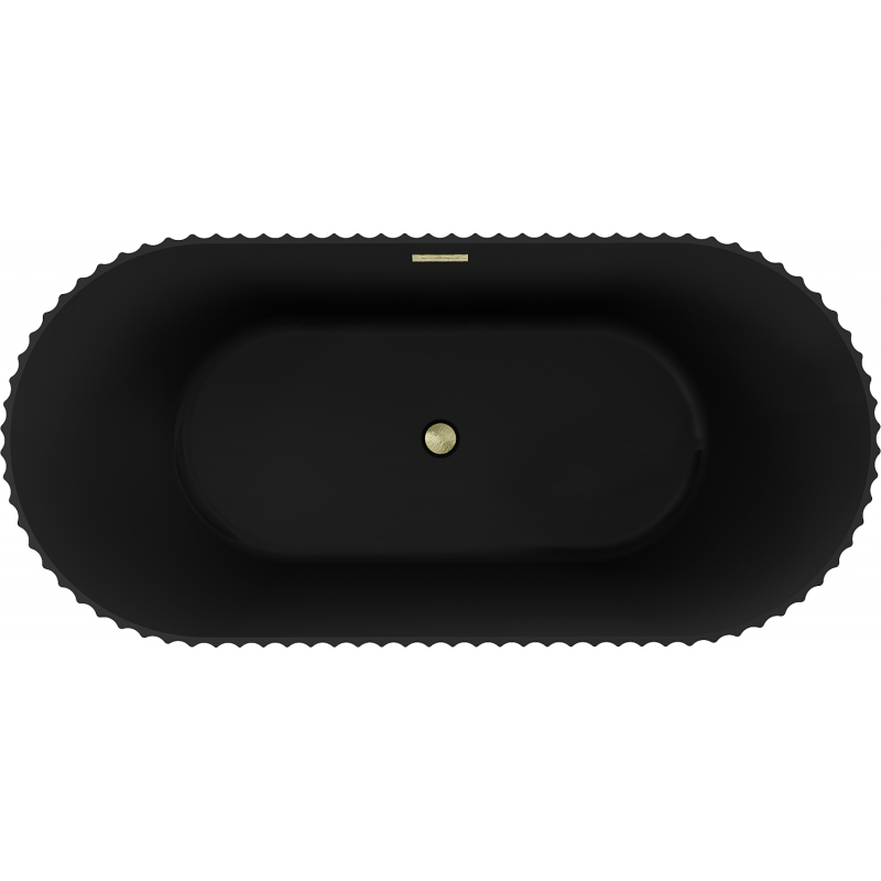 Volně stojící vana Mexen Paola s drážkovaným povrchem 150 x 75 cm, matná černá, přepad kartáčovaný zlatý - 52721507571-55