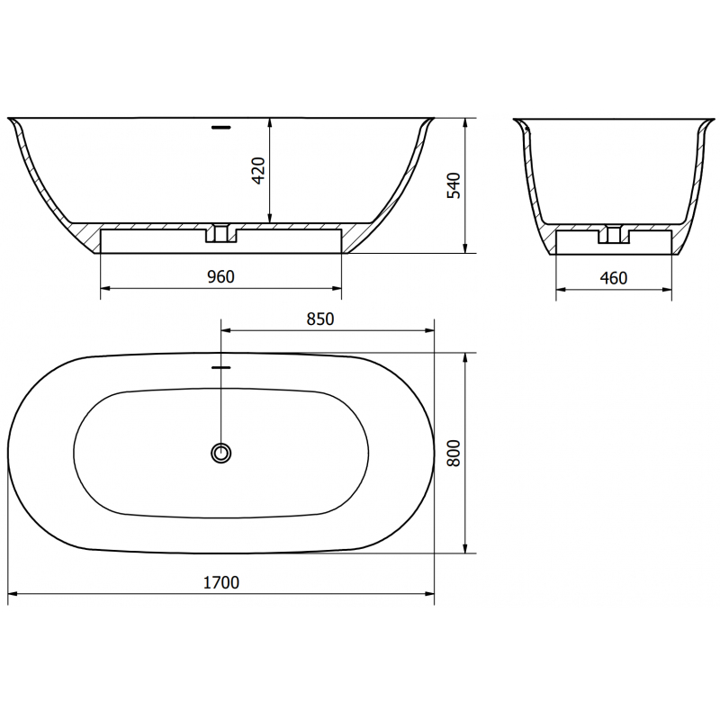 Technické údaje: Rozměry: 170 x 80 cm Výška: 54 cm Hloubka: 42 cm Instalace: Volně stojící Materiál: Konglomerát Barva: Matná bílá Povrchová úprava: Matná bílá Otvor pro přepad: Ano Otvor pro baterii: Ne Sifon a zátka click-clack jsou součástí dodávky Odolnost vůči baterii, baterii a UV záření