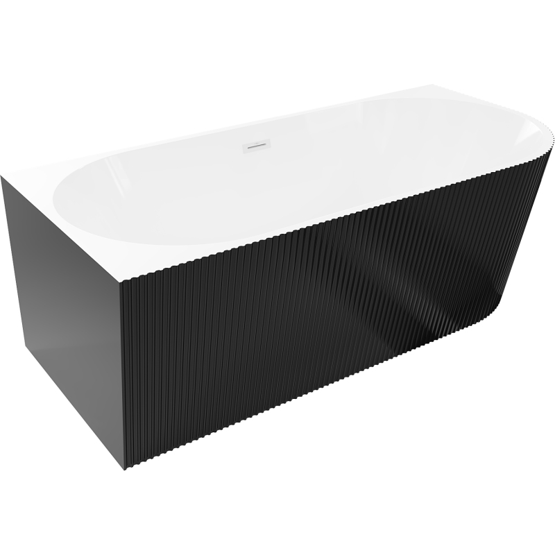 Volně stojící vana Mexen Silo do levého rohu, drážkovaná, 150 x 75 cm, bílá/černá, bílý přepad - 52891507575L-20