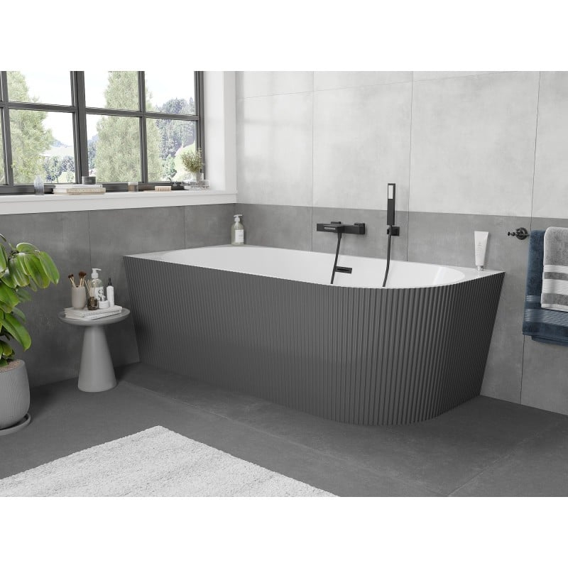 Volně stojící vana Mexen Silo do levého rohu, drážkovaná, 150 x 75 cm, bílá/šedá, černý přepad - 52891507562L-70