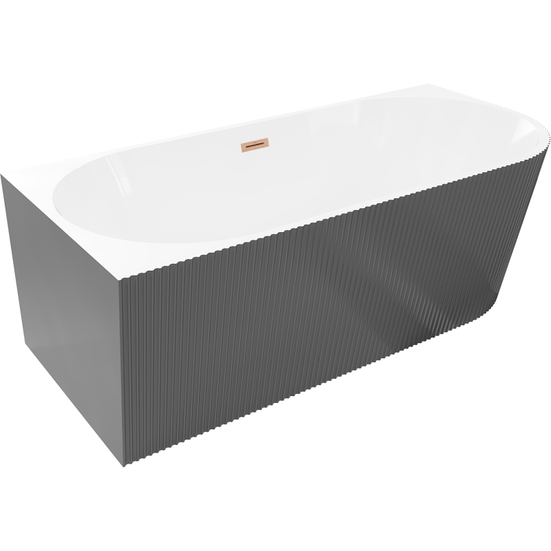 Volně stojící vana Mexen Silo do levého rohu, drážkovaná, 150 x 75 cm, bílá/šedá, přepad kartáčovaná měď - 52891507562L-65