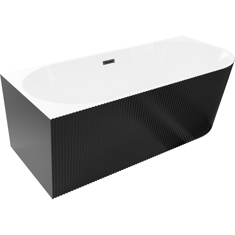 Volně stojící vana Mexen Silo do levého rohu, drážkovaná, 170 x 80 cm, bílá/černá, černý přepad - 52891708075L-70