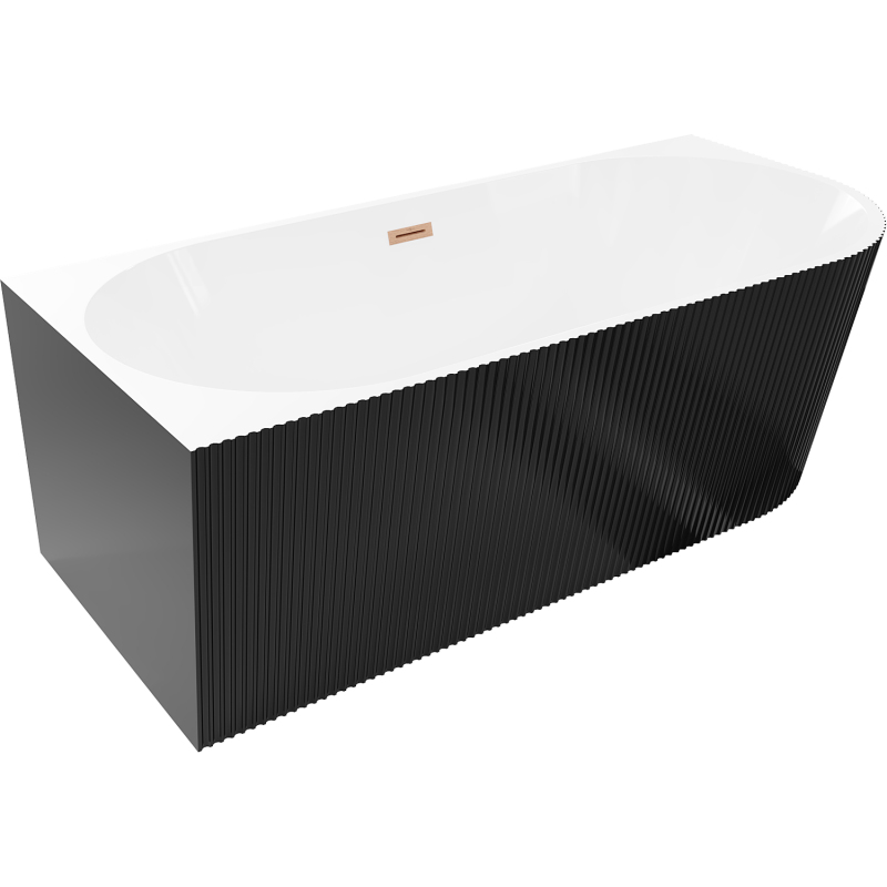 Volně stojící vana Mexen Silo do levého rohu, drážkovaná, 170 x 80 cm, bílá/černá, přepad kartáčovaná měď - 52891708075L-65