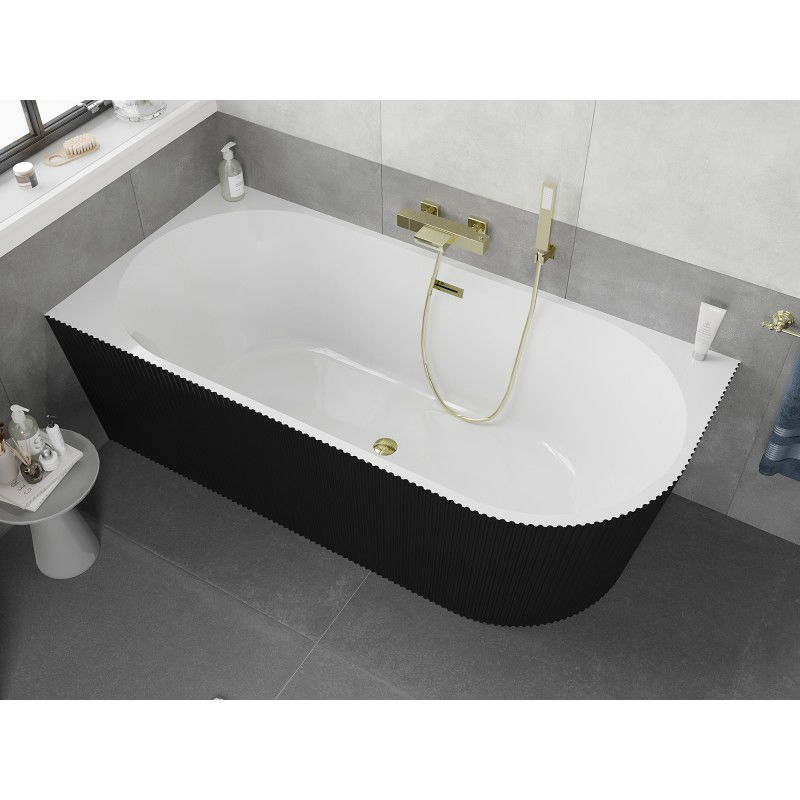 Volně stojící vana Mexen Silo do levého rohu, drážkovaná, 170 x 80 cm, bílá/černá, zlatý přepad - 52891708075L-50