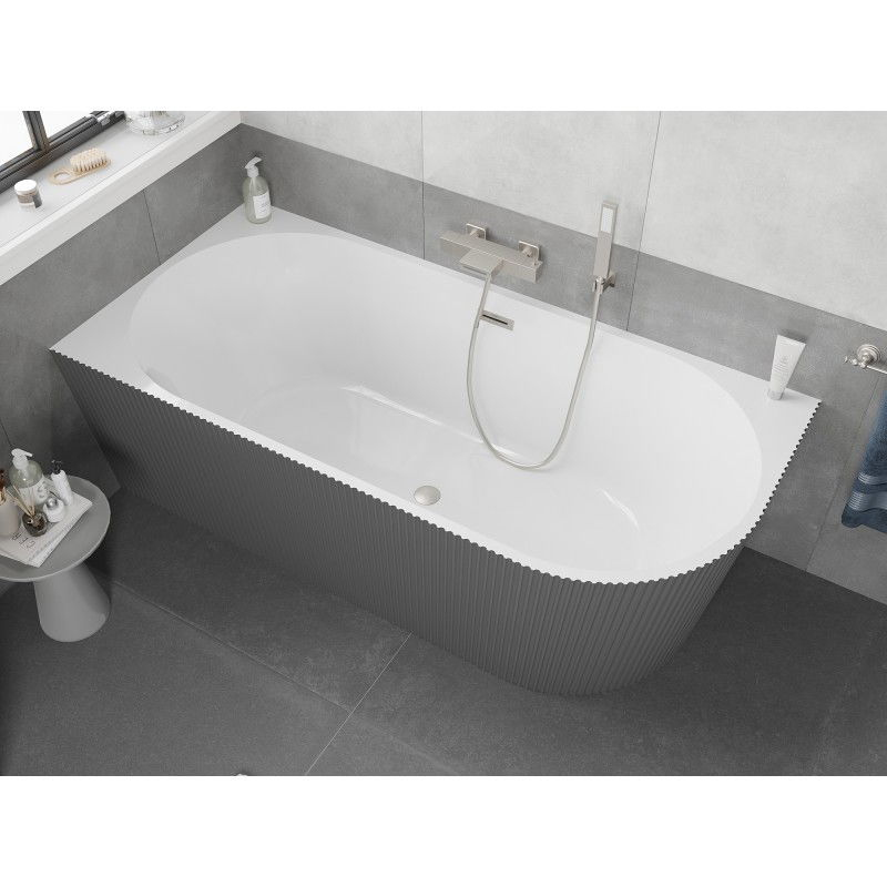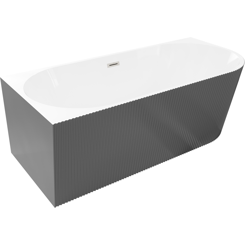 Volně stojící vana Mexen Silo do levého rohu, drážkovaná, 170 x 80 cm, bílá/šedá, přepad kartáčovaný nikl - 52891708062L-97