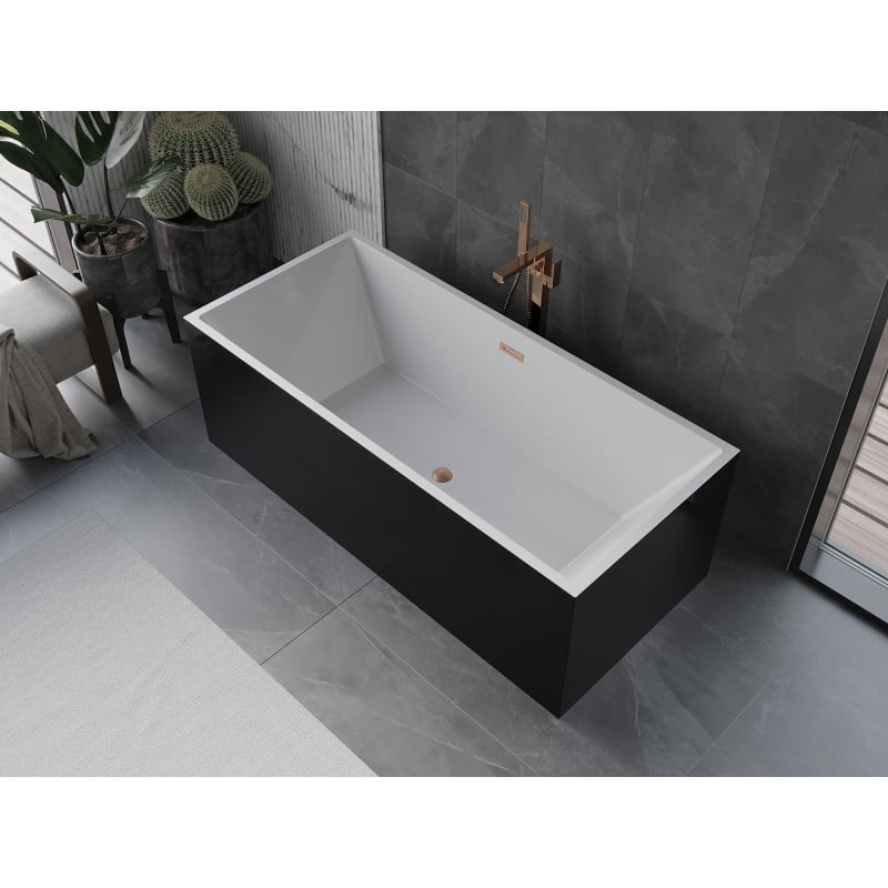 Volně stojící vana Mexen Vigo 178,5 x 80 cm, bílá/černá, přepad z kartáčované mědi - 51251788075-65