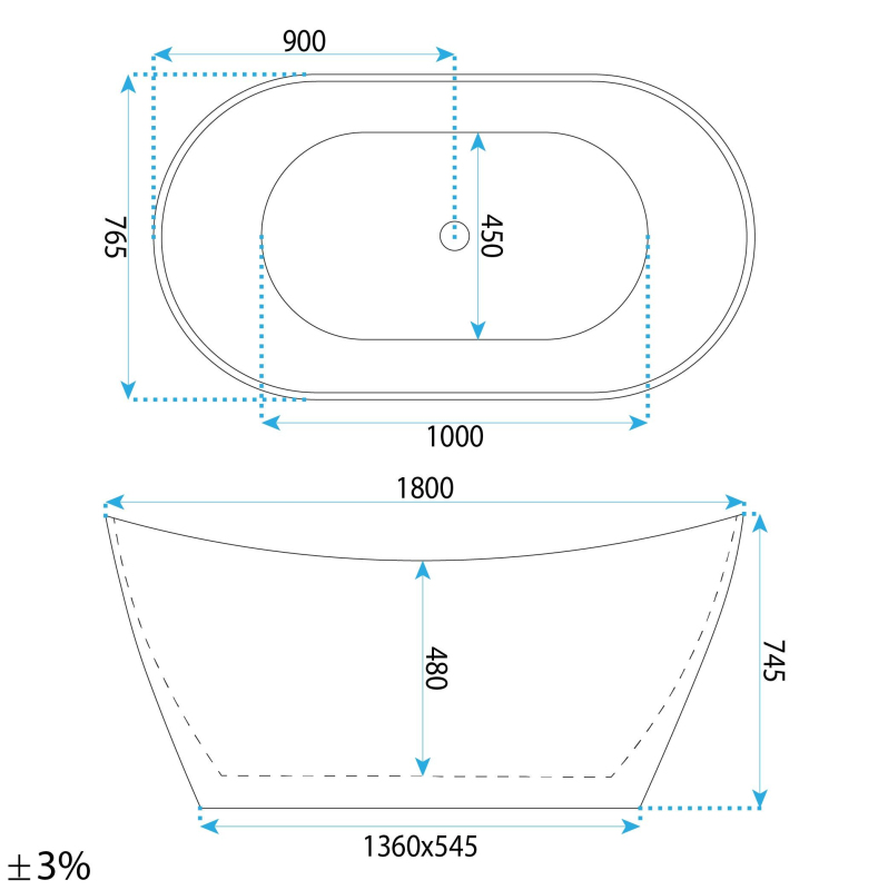 REA Volně stojící vana FERRANO Slim 180 REA-W0082