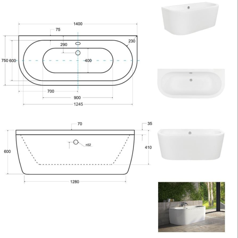 na objednávkuBESCO vana volně stojící VISTA, 1400 × 750 mm, bílá barva, sanitární kompozit VANTUR140