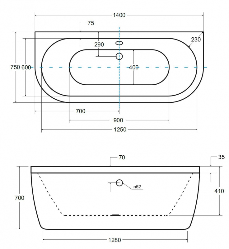 Vana je určena k montáží k průběžné stěně delší stranou.