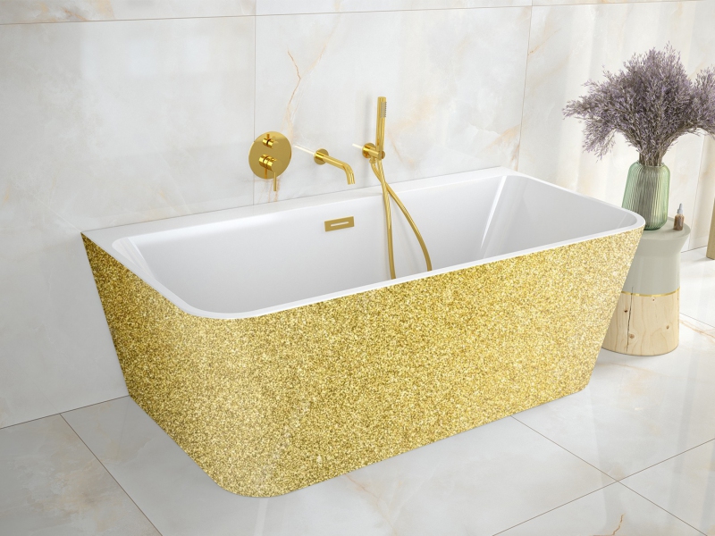 Vana určená k instalaci k průběžné stěně VARYA GLAM se Vám odmění pocitem vysokého komfortu. Budete ležet v lázni a kolem Vás bude dost místa, nic Vás nebude omezovat. Vana i vnější plášť tvoří kompaktní celek. Vana se standardně dodává ve dvou praktických rozměrech. Čelní strana je provedena ve GLAM01 zlaté barvě, horní a vnitřní část vany v bílé barvě. Hladký povrch umožňuje jeho snadnou údržbu. Vanu není třeba obezdívat a obkládat. Součástí vany je také odtokový systém click-clack s přepadem v chromu ve standardním provedení. Dále nabízíme tyto sifony za příplatek v dalších 4 barvách (zlatá, černá, bílá a grafitová).