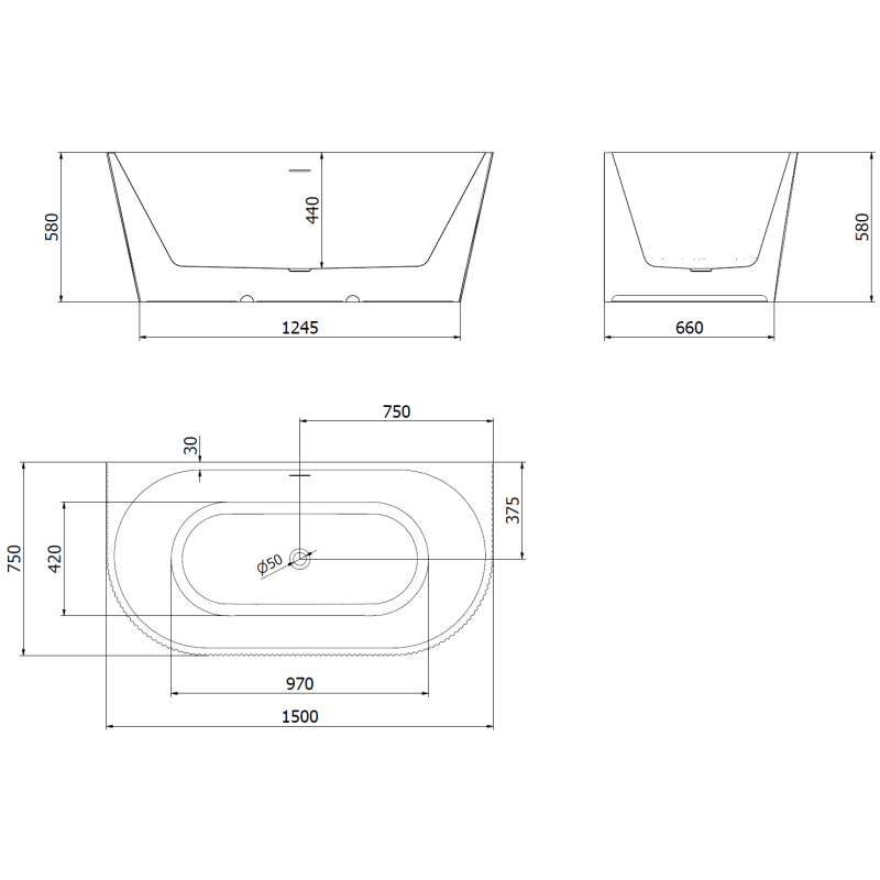 Specifikace produktu: Rozměry: 150 x 75 cm Výška: 58 cm Hloubka: 44 cm Montáž: Nástěnná Materiál: Sanitární akrylát Barva: Bílá/Černá Povrchová úprava: Zlatá Struktura: Drážkovaná Otvor pro přepad: Ano Otvor pro baterii: Ne Sifon a zátka click-clack jsou součástí dodávky Odolné vůči baterii, baterii a UV záření