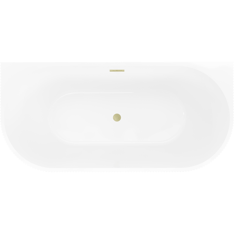 Volně stojící závěsná vana Mexen Oris s drážkovaným přepadem 150 x 75 cm, bílá, kartáčovaný zlatý přepad - 52871507500-55