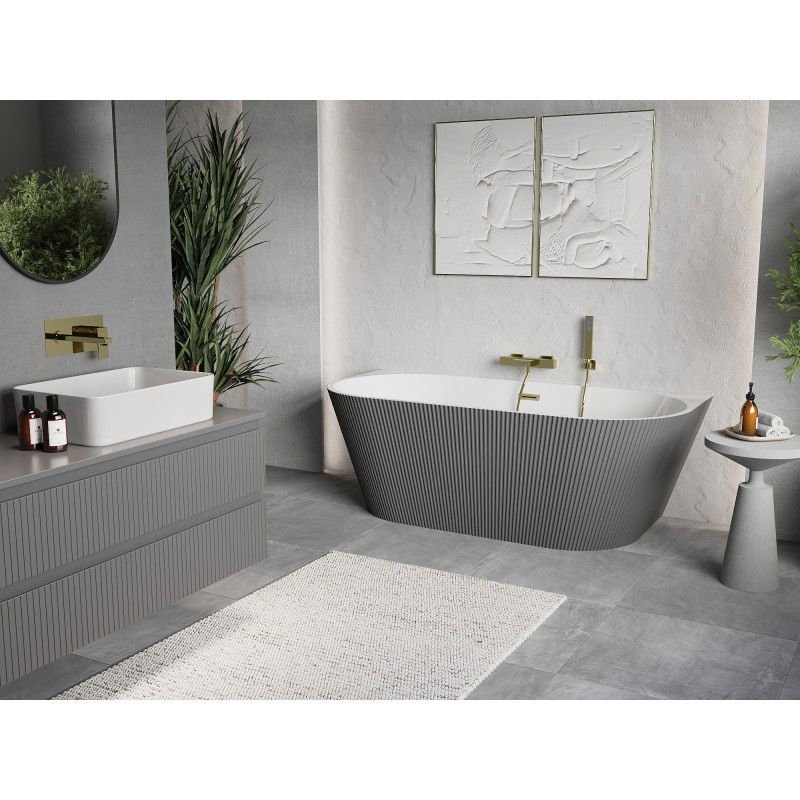 Volně stojící závěsná vana Mexen Oris s drážkovaným přepadem 170 x 80 cm, bílá/šedá, přepad kartáčovaný zlatý - 52871708062-55