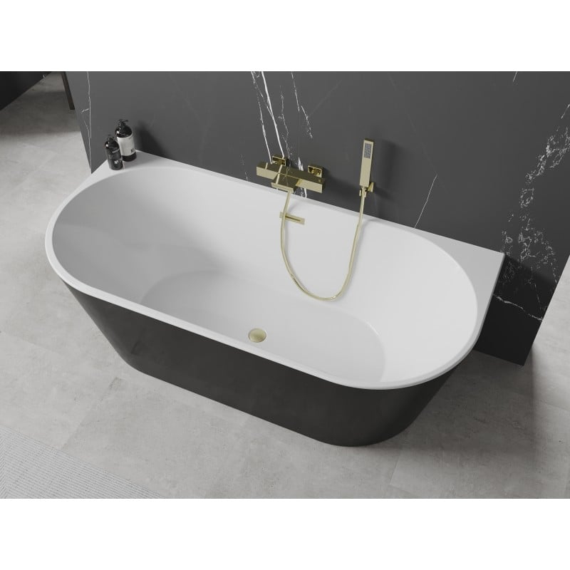 Volně stojící závěsná vana Mexen Oval 170 x 80 cm, bílá/černá, přepad kartáčovaný zlatý - 52671708075-55