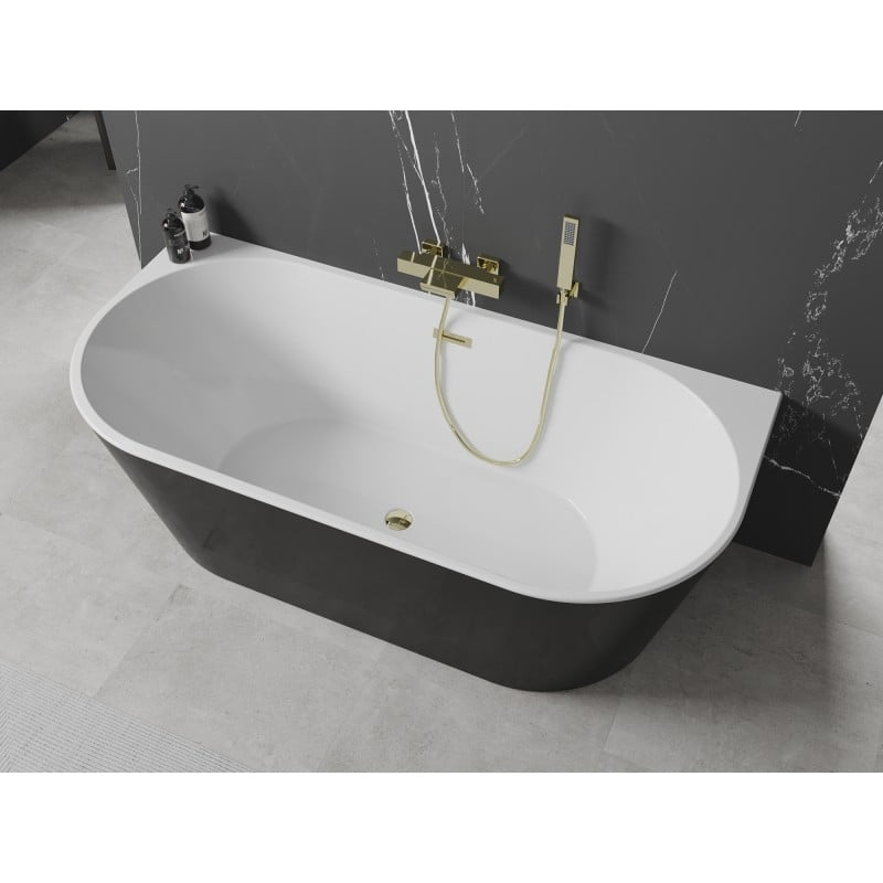 Volně stojící závěsná vana Mexen Oval 170 x 80 cm, bílá/černá, zlatý přepad - 52671708075-50