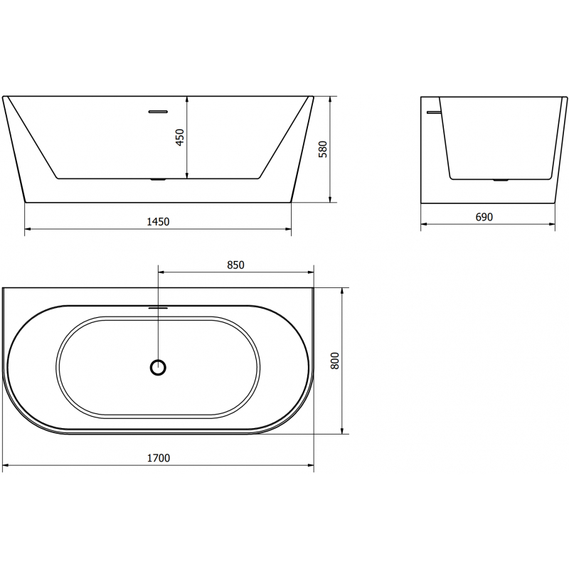 Specifikace produktu: Rozměry: 170 x 80 cm Výška: 58 cm Hloubka: 45 cm Montáž: Nástěnná Materiál: Sanitární akrylát Barva: Bílá Povrchová úprava: Kartáčovaná pistolově šedá Otvor pro přepad: Ano Otvor pro baterii: Ne Sifon a zátka click-clack jsou součástí dodávky Odolné vůči baterii, baterii a UV záření
