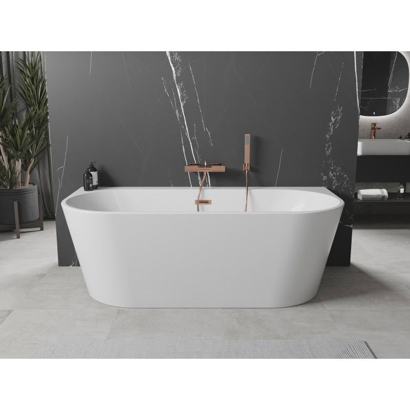 Volně stojící závěsná vana Mexen Oval+ 170 x 80 cm, bílá, růžovo-zlatý přepad - 52681708000-60