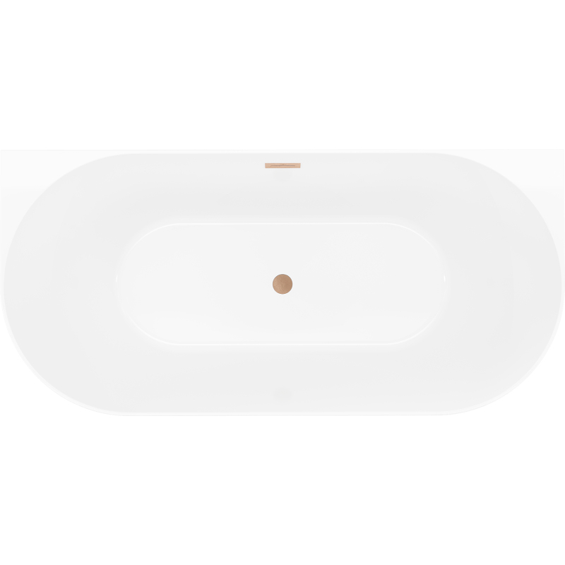 Volně stojící závěsná vana Mexen Oval Slim 170 x 80 cm, bílá/šedá, přepad kartáčovaná měď - 52661708062-65