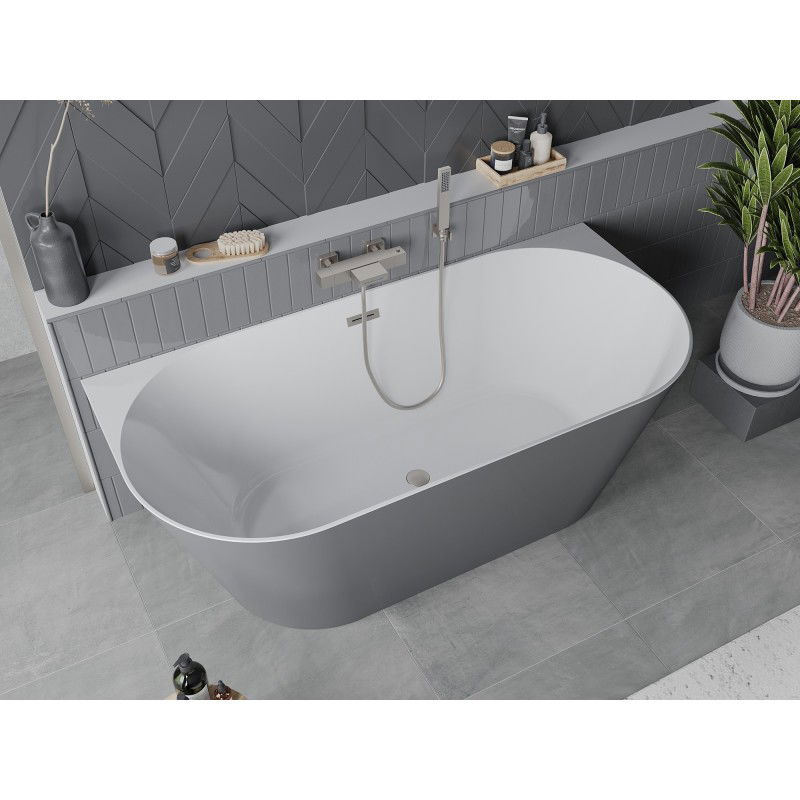 Volně stojící závěsná vana Mexen Oval Slim 170 x 80 cm, bílá/šedá, přepad kartáčovaný nikl - 52661708062-97