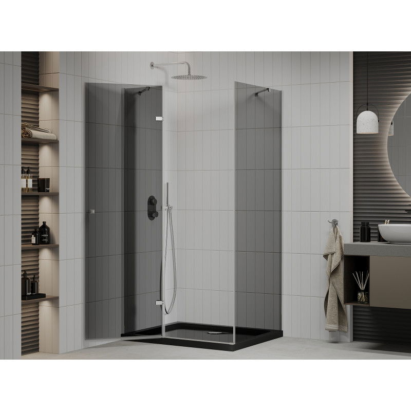 Výklopný sprchový kout Mexen Roma 90 x 100 cm, grafit, chrom + Plochá sprchová vanička, černá - 854-090-100-01-40-4070