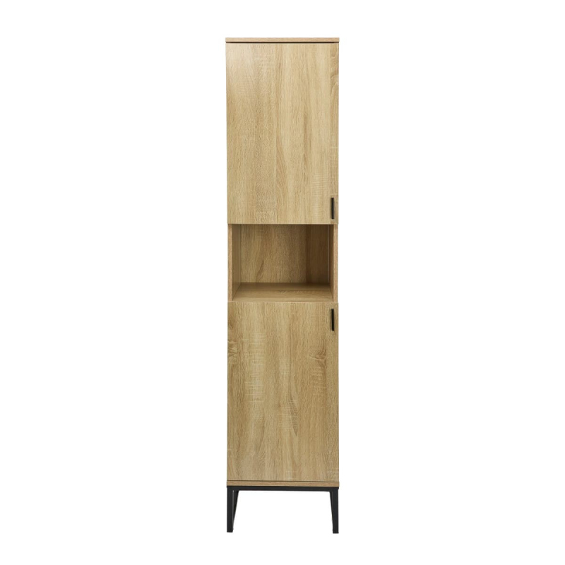 Stojící vysoká skříňka v provedení světlý dub s lesklým povrchem o rozměru 39x185x36 cm. S povrchem z MDF desky. Dvířka mají levé otevírání.