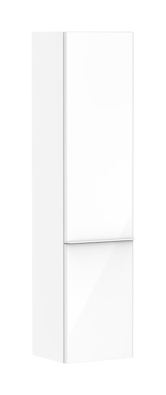 Vysoká skříňka v barevném provedení bílá lesklá s lesklým povrchem o rozměru 40x165x35 cm. S povrchem z MDF desky. Dvířka mají levé otevírání.