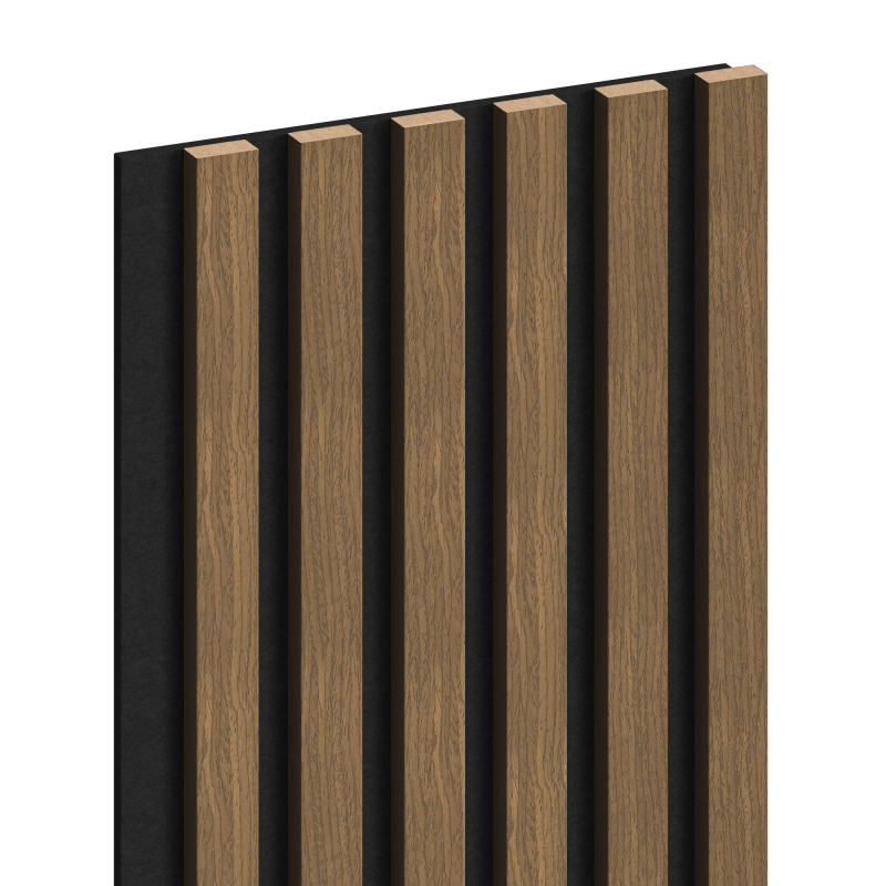 Nabídka se vztahuje na vzorek nástěnné lamely o rozměrech 15 x 15 cm. Vzorek je pouze fragmentem lamely a nepředstavuje celý vzor, vzor je rozložen na několika lamelách. Specifikace produktu: Délka: 275 cm Šířka: 30 cm Tloušťka: 2,3 cm Tloušťka podkladu: 8 mm Tloušťka jedné lamely: 15 mm Šířka jedné lamely: 30 mm Rozteč mezi lamelami: 20 mm Počet lamel: 6 Materiál lamel: MDF páska + technická dýha Podkladový materiál: Plsť Konstrukce lamel: Ořech Odstín lamel: Přírodní Barva podkladu: Černá Způsob montáže: Lepením nebo šrouby Obsahuje materiály zpomalující hoření Mají akustické a zvukově izolační vlastnosti, které účinně redukují nežádoucí zvuky.