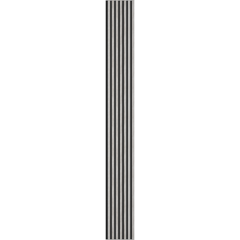 Nabídka se vztahuje na vzorek nástěnné lamely o rozměrech 15 x 15 cm. Vzorek je pouze fragmentem lamely a nepředstavuje celý vzor, vzor je rozložen na několika lamelách. Specifikace produktu: Délka: 275 cm Šířka: 31,5 cm Tloušťka: 1,9 cm Tloušťka podkladu: 6 mm Tloušťka jedné lamely: 13 mm Šířka jedné lamely: 28 mm Rozteč mezi lamelami: 18 mm Počet lamel: 7 Materiál lamel: MDF páska + melaminová dýha Podkladový materiál: Plsť Konstrukce lamel: Dub Odstín lamel: Šedý Barva podkladu: Černá Způsob montáže: Lepením nebo šrouby Obsahuje materiály zpomalující hoření Mají akustické a zvukově izolační vlastnosti, které účinně snižují nežádoucí zvuky.