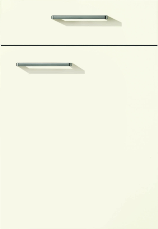 Vzorek kuchyňských dvířek Naturel FATMA 450 v leskle bílé barvě s lakovaným laminátovým povrchem ve vysokém lesku. Skvělý pomocník pro výběr kuchyně z řady Naturel Fatma – pro sladění barev, lesku a celkového dojmu.