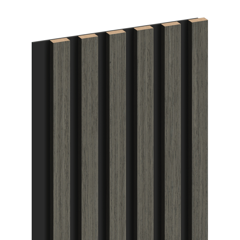 Nabídka se vztahuje na vzorek nástěnné lamely o rozměrech 15 x 15 cm. Vzorek je pouze fragmentem lamely a nepředstavuje celý vzor, vzor je rozložen na několika lamelách. Specifikace produktu: Délka: 275 cm Šířka: 30 cm Tloušťka: 2 cm Tloušťka podkladu: 4 mm Tloušťka jedné lamely: 16 mm Šířka jedné lamely: 30 mm Rozteč mezi lamelami: 20 mm Počet lamel: 6 Materiál lamel: MDF lišta + technická dýha Podkladový materiál: HDF deska Konstrukce lamel: Dub Odstín lamel: Šedá Barva podkladové vrstvy: Černá Způsob montáže: Lepením nebo šrouby