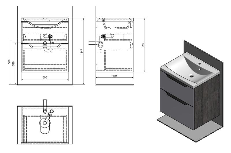 WAVE umyvadlová skříňka 60x65x47,8cm, bílá/dub collingwood WA060-3019