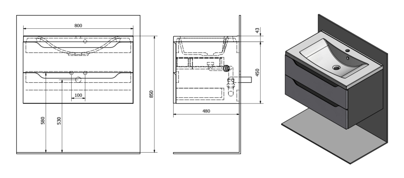 WAVE umyvadlová skříňka 79,7x45x47,8cm, bílá/dub alabama WA080-3022