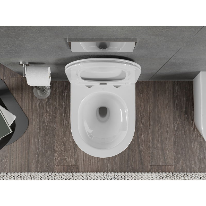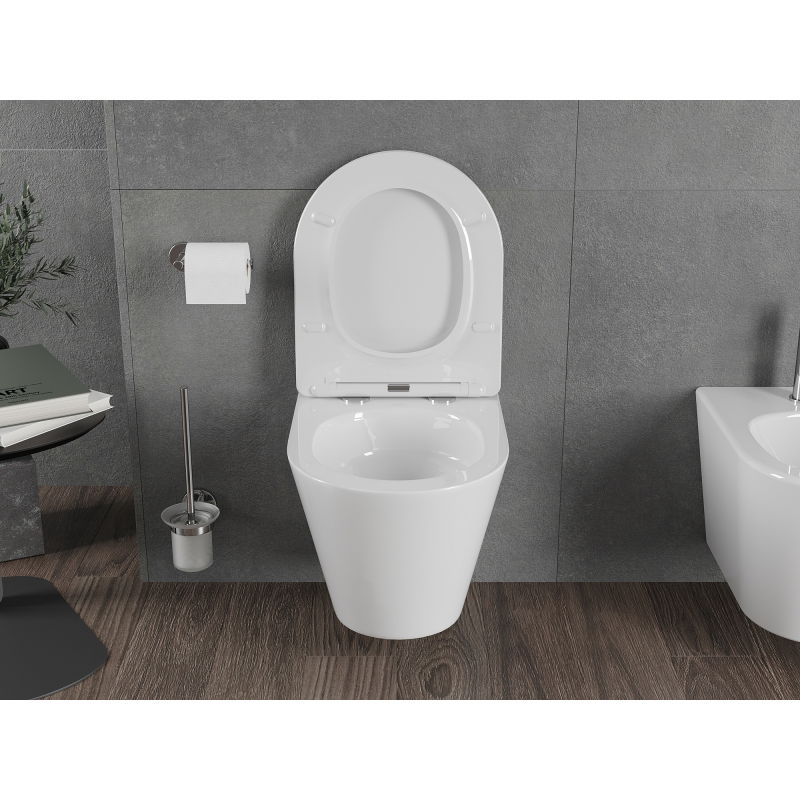 Specifikace produktu: Rozměr: 48x36x37 cm Montáž: Závěsná Splachování: Bez okraje Tornado Barva: Lesklá bílá Materiál: Sanitární keramika Typ sedátka: S pomalým dovíráním Barva: Lesklá bílá Materiál: Duroplast Tenké provedení: Ano Snadné uvolnění: Ano Kovové panty: Ano