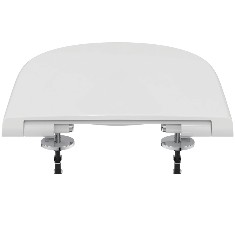 WC prkénko z duroplastu se softclose (pomalé sklápění) v bílé barvě a délkou sedátka 44 cm. Panty z oceli. Rozteč upevnění 18 cm.