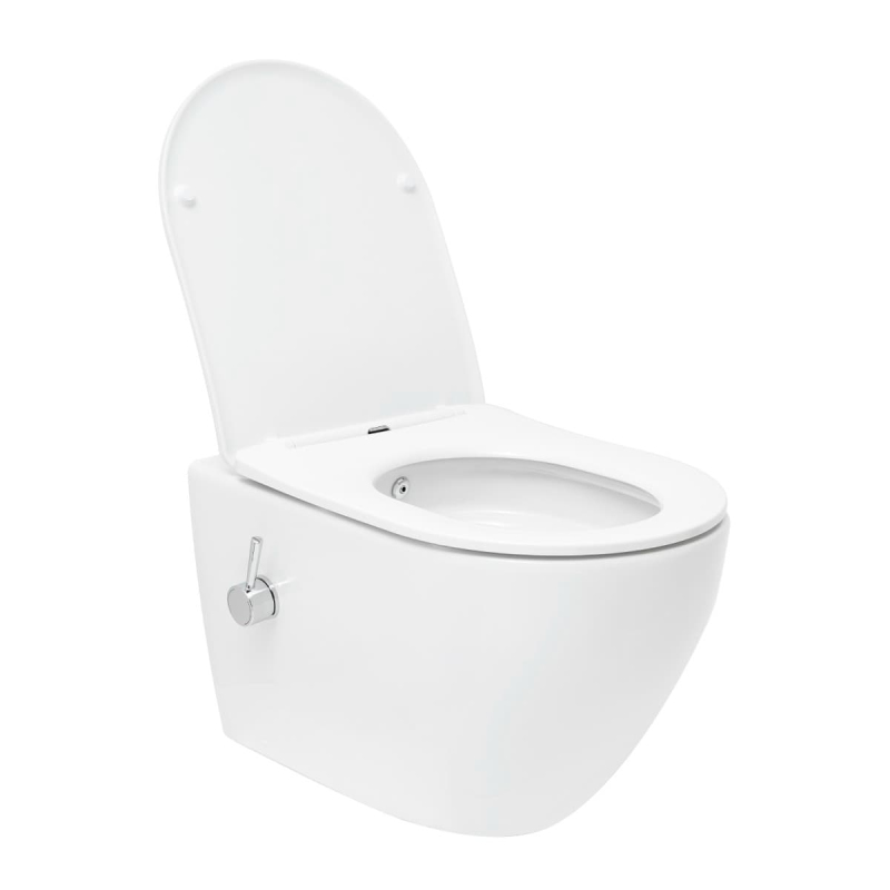 Závěsné WC s bidetem se zadním odpadem, vírové splachování. Balení je s poklopem soft close. Objem splachování 3/6 litru. Montážní sada je součástí balení.