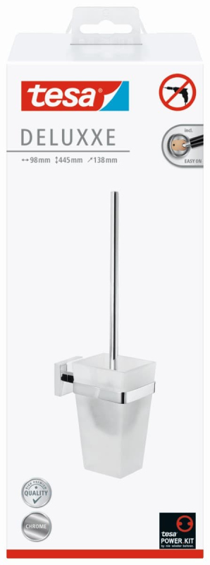 Díky oslnivé kombinaci chromu a skla samolepicí WC štětka tesa® Deluxxe krásně vynikne kdekoli. Montáž je snadná.