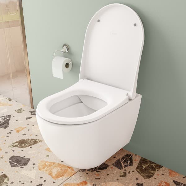 Závěsné WC VitrA s prkénkem softclose se zadním odpadem bez splachovacího okruhu. Objem splachování 2,5/4 litrů. Skryté uchycení.
