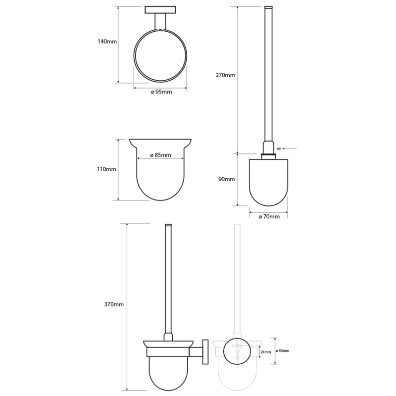 X-ROUND BLACK WC štětka závěsná, mléčné sklo, černá mat XR303B