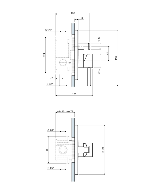 Omnires Y podomítková vanovo-sprchová baterie, nástěnný díl, měď lesk Y1235ROCP