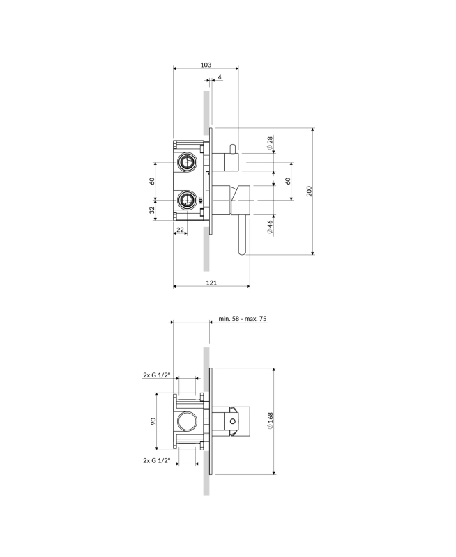 Y element natynkowy baterii prysznicowej 2-wyjściowej, grafit szczotkowany