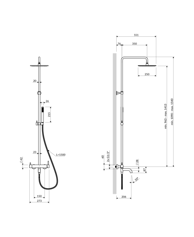 Y system wannowy natynkowy, chrom połysk