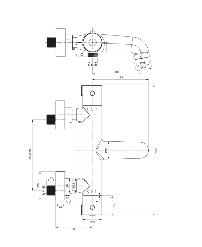 Omnires Y termostatická vanová baterie, chrom lesk Y1236-NCR
