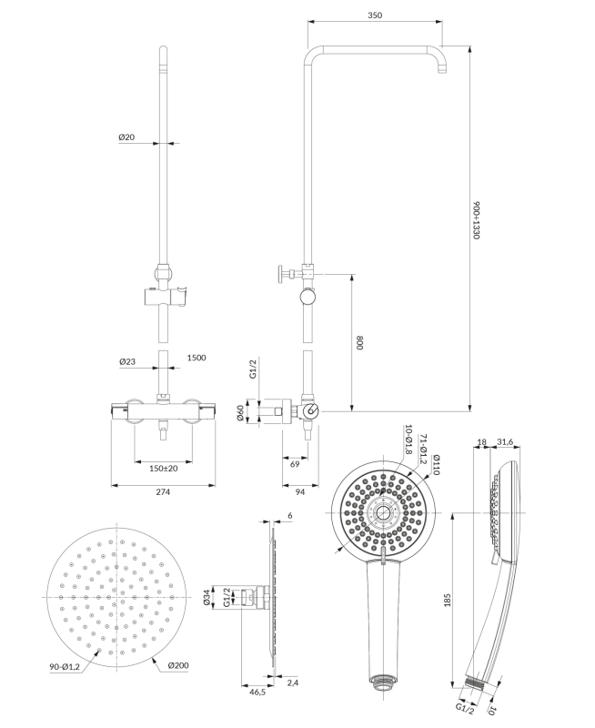 Omnires Y termostatický nástěnný sprchový systém, chrom lesk Y1244X-6CR