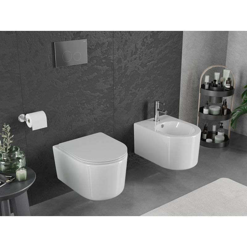 Záchodová mísa Mexen Sofia Rimless Tornado s úzkým sedátkem s tlumeným dovíráním, duroplast, lesklá bílá - 30540300T