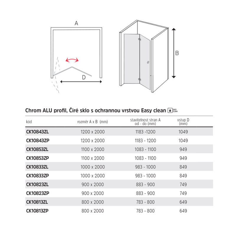 Novea zalamovací dveře pravé, 110x200 cm, chrom ALU, sklo čiré 6 mm, EC CK10853ZP