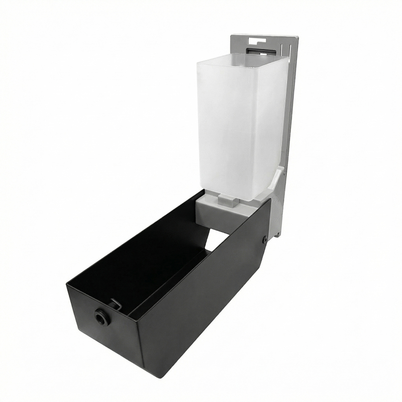 Zásobník na tekuté mýdlo nebo dezinfekční gel 1250 ml na stěnu černý matný je skvělým doplňkem do koupelny. Na toaletách frekventovaných místech jsou v současnosti populární zásobníky tekutých mýdel, které jsou jednoduché, až strohé, nejlépe neviditelné, ale s perfektními technickými parametry. Objem zásobníku je 1250 ml. Vnitřní část zásobníku je plastová a plnění je jednoduché. V případě plnění zásobníku dezinfekcí použijte GEL. Dávkovač není určen pro kapalnou dezinfekci.