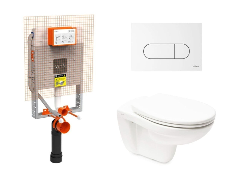 Závěsný wc set - sada obsahuje Vitra modul k zazdění,a WC sedátko. WC prkénko je vyrobeno z materiálu thermoplast. Ovládací tlačítko je z materiálu plast, a je v barevném provedení Bílá lesk.