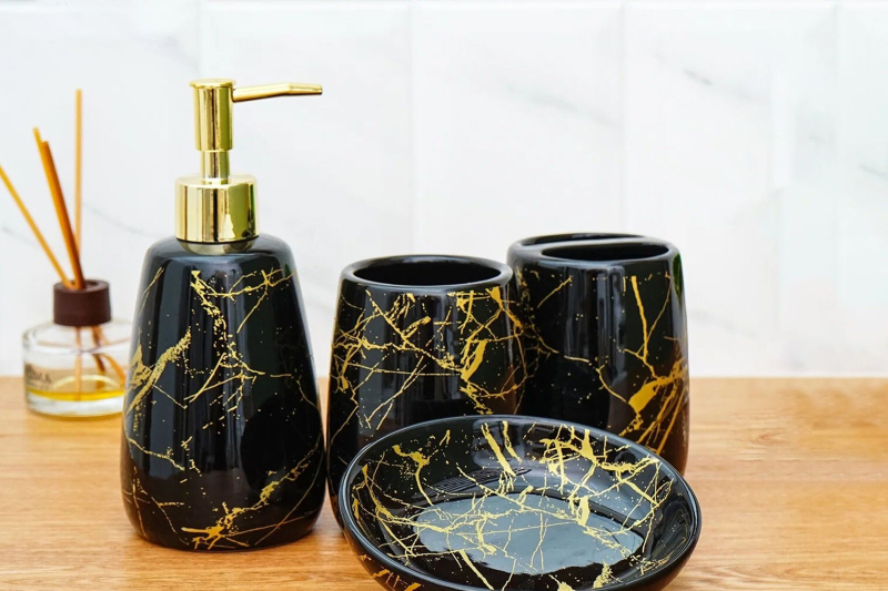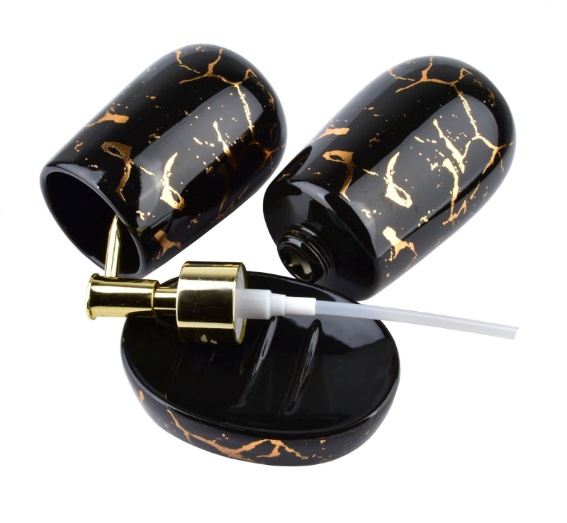 Praktyczny i elegancki zestaw łazienkowy, składający się z trzech elementów: Dozownika do mydła w płynie, kubka łazienkowego i mydelniczki. Zestaw wykonany jest z ceramiki sanitarnej, a jego oryginalne wykończenie dopełni wystroju każdej łazienki