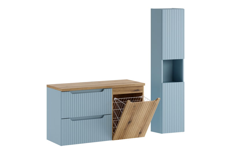 Zestaw meblowy 100cm z blatem, szafką z koszem na praniem i szafką wysoką